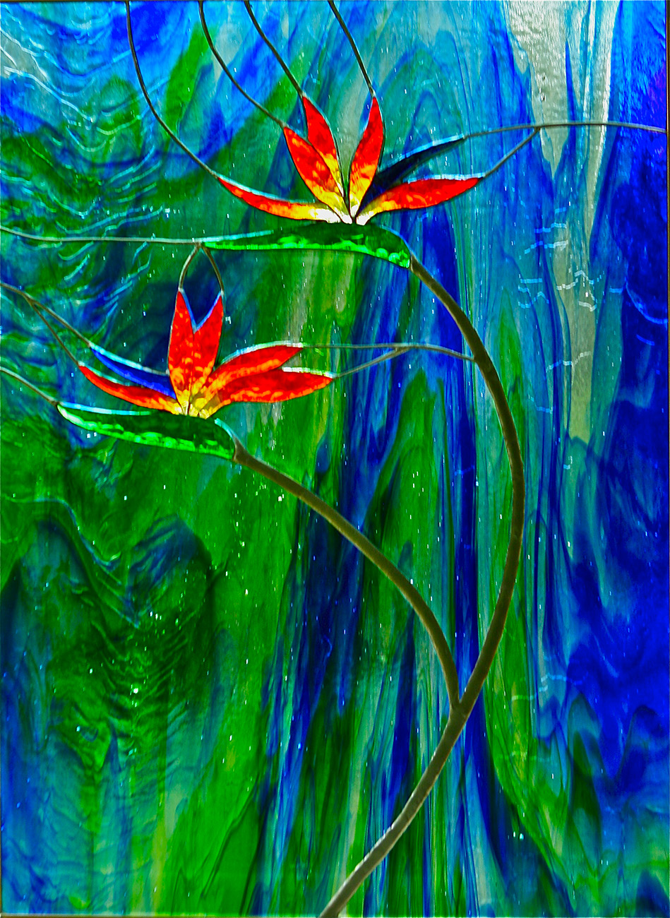 BIRD OF PARADISE #2 Posted on 05/16/2012 by rns This panel is almost identical to Bird of Paradise #1 except that I used a colored background. 16″ X 24″ ( click on image to enlarge )