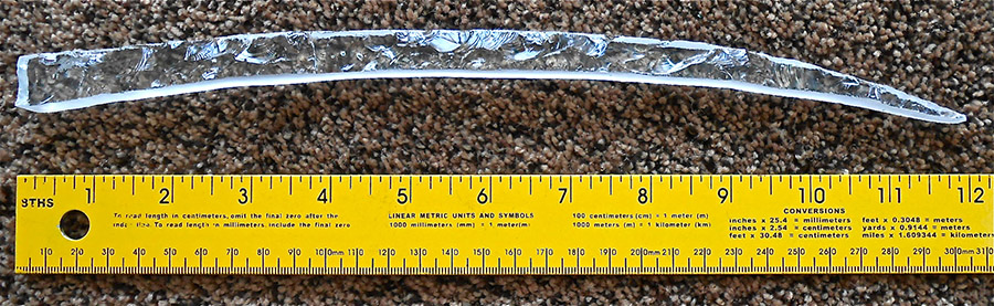 I would also like you to be aware that it is possible to make long narrow pieces of faceted glass. The piece illustrated below is 12″ long and 5/8″ wide at one end tapering to a point at the other end. Long pieces are sometimes required for a design as illustrated in several of my bamboo panels #1 & #3 .