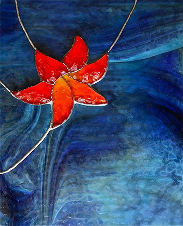 The second issue that I wanted to raise, mentioned in the About page, is the possibility of incorporating faceted glass elements such as the flowers or pumpkins that are epoxied rather than than foiled and soldered ( see posts Foil and Solder and Nautilus ) into traditional faceted glass works. This is, as with issue number three discussed below, an area for others to decide.