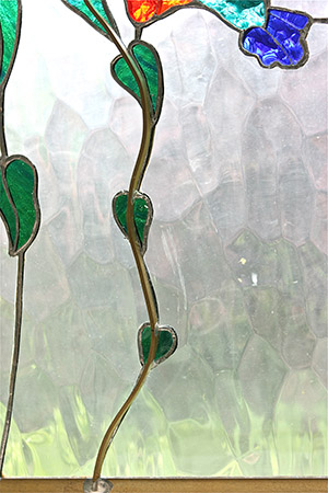 The finished panel ready for framing is illustrated in the image below. I use brass U came 3/8 – 1/2 – 3/4″ depending on the size, weight and aesthetics of the panel simply because I like how it accents the glass. Any framing material to which you are partial ( zinc, wood etc. ) is fine as long as it will support the weight of the panel.